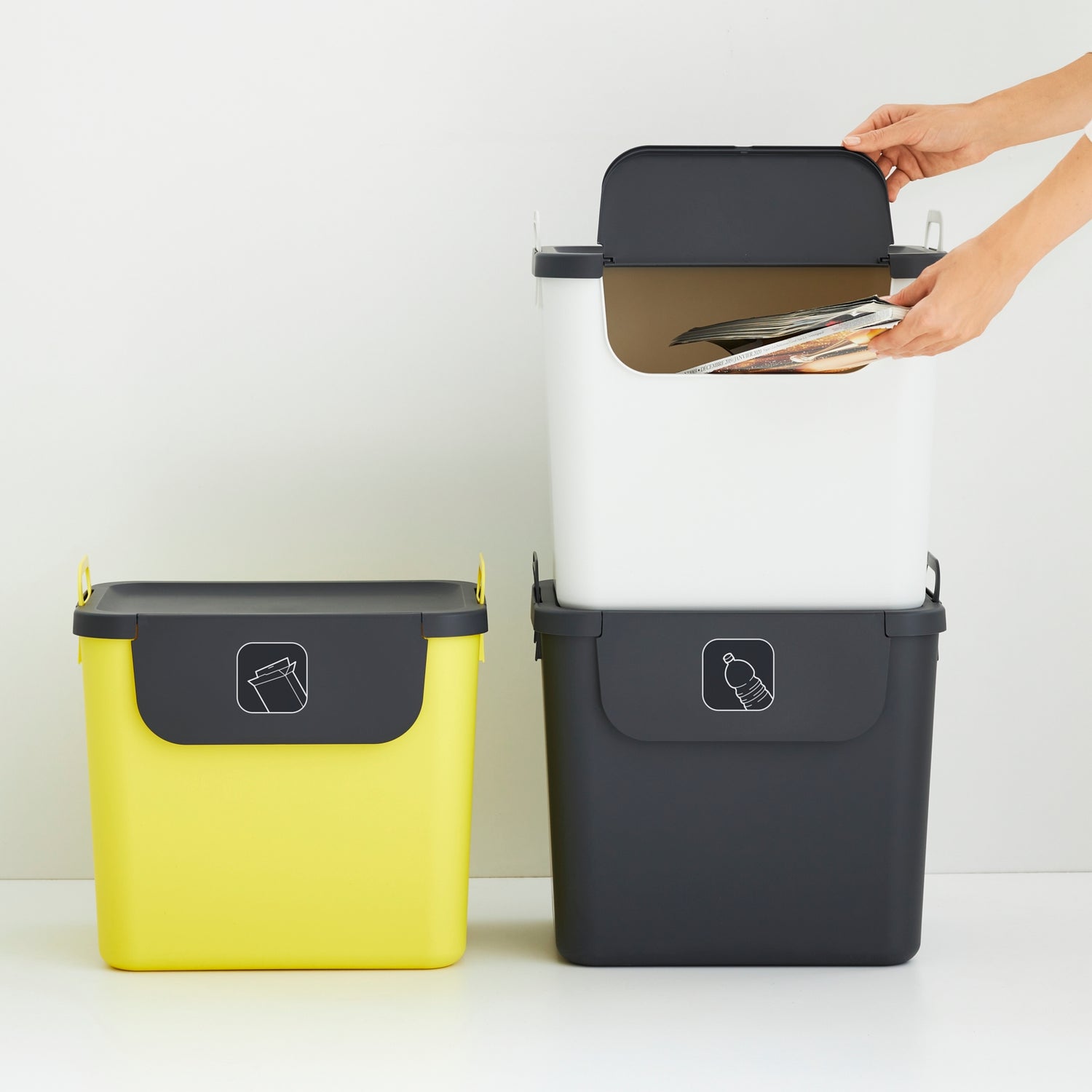 Papier, Glas und Pfandflaschen sammeln sich in Plastikbeuteln in einer völlig überfüllten bagsEcke? Kennst du das auch? Dann brauchst du vielleicht ein besseres Recyclingsystem. Dabei können dir unsere Albula Container helfen, die es in drei verschiedenen Größen (40, 25 und 6 Liter) gibt. Es sind nicht einfach nur Abfalleimer mit Deckel. Du kannst sie dir ganz einfach nach deinen individuellen Bedürfnissen zu einem System zusammenstellen. Dadurch, dass sie stapelbar sind und trotzdem auch übereinander gestapelt befüllt werden können, kannst du Ecken und Nischen effizient nutzen. Für jede Box gibt es eine Auswahl an Stickern inklusive, damit die ganze Familie gleich alles richtig einsortieren kann. Und wenn die Container voll sind, kannst du sie einfach so mit praktischen Griffen zum Recycling mitnehmen. Den 6 Liter Albula Mülleimer kannst du für deinen Biomüll als Kompostbehälter nutzen. So kannst du deine Obst- und Gemüsereste einfach gesammelt zur Biotonne bringen.