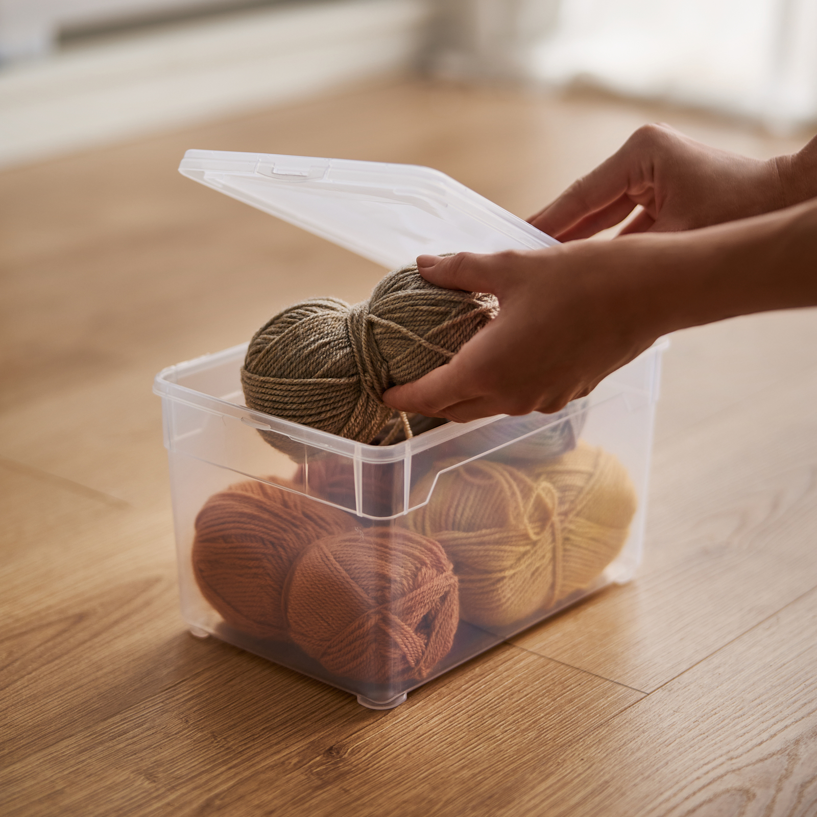 What to do with gloves, hats and the like when spring arrives? And what to do with the small demo articles on which an unsightly layer of dust spreads in no time at all? Organizational problems like these can now be solved easily and stylishly with the CLEAR storage box. Hobby utensils, toys and many other everyday objects are well protected in the transparent box, neatly stored and can still be found at any time. You free your living space from objects lying around in no time at all, without your boxes and cupboards bursting at the seams.