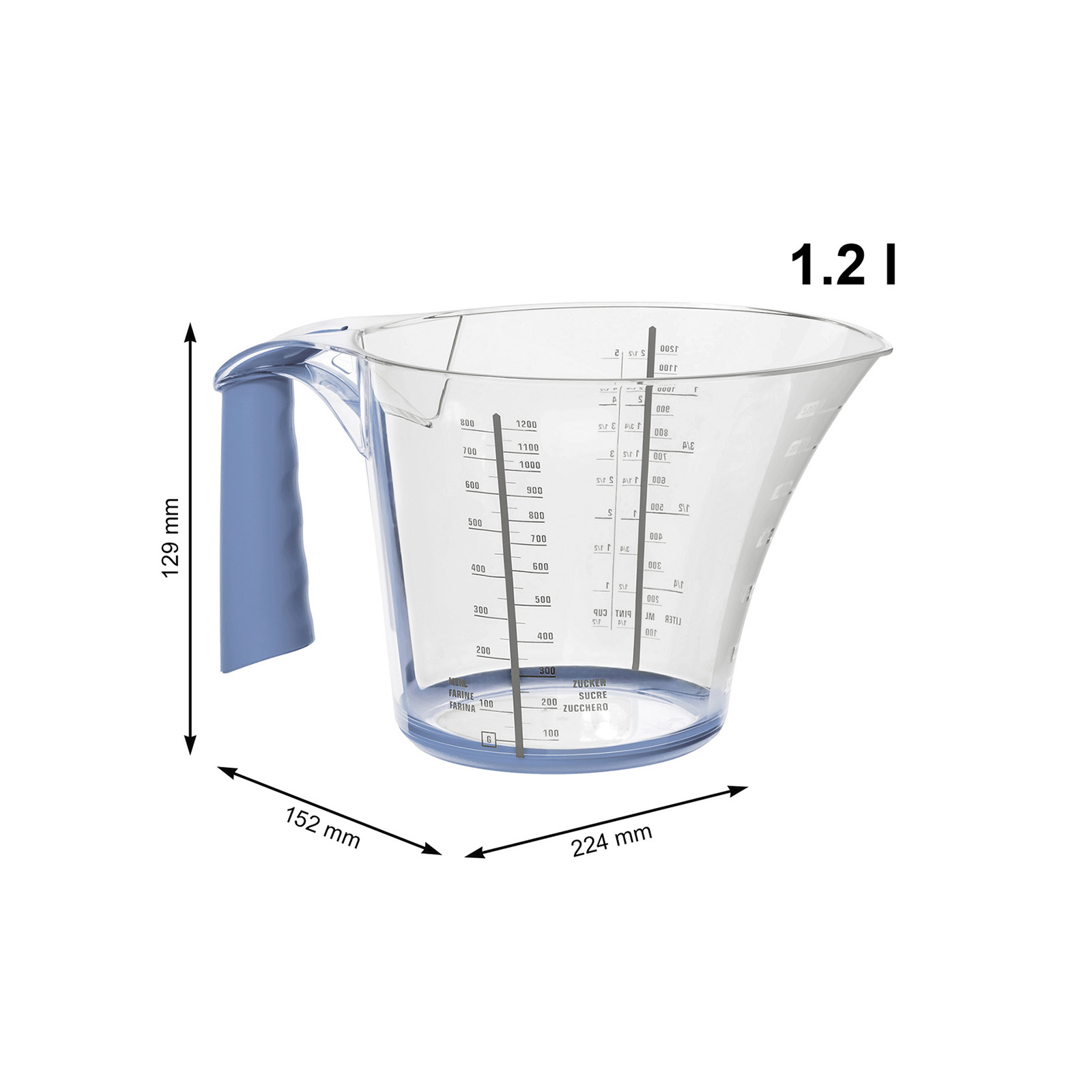 Messbecher gibt es viele. Doch wenige sind so praktisch und edel zugleich wie der Messbecher LOFT. Der hoch transparente Behälter wirkt wie ein Glasgefäss, ist im Unterschied zu diesem jedoch nicht zerbrechlich. Mehrere eingravierte Skalen für Flüssigkeiten, Zucker und Mehl machen den Becher zu einem unentbehrlichen Helfer beim Kochen und Backen. Praktisch, wenn es schnell gehen muss: Die Massangaben lassen sich sogar von innen her ablesen. Der ergonomische Softgriff ermöglicht eine komfortable Handhabung und sorgt dafür, dass Ihre Koch- und Backzutaten dort landen, wo sie hingehören - und nicht etwa am Boden oder auf Ihrer Kleidung.