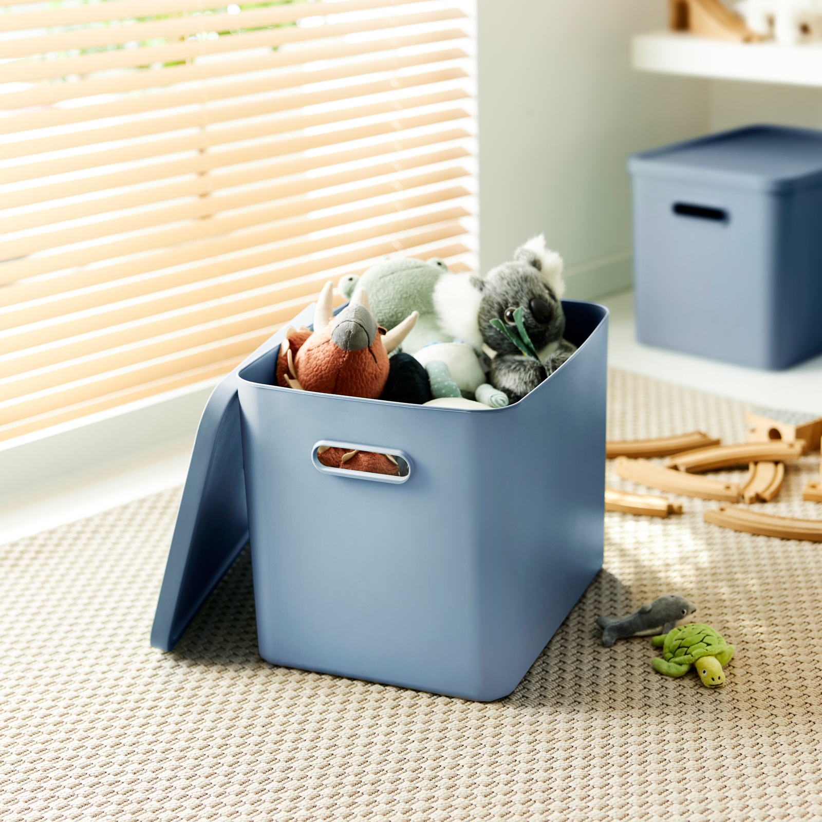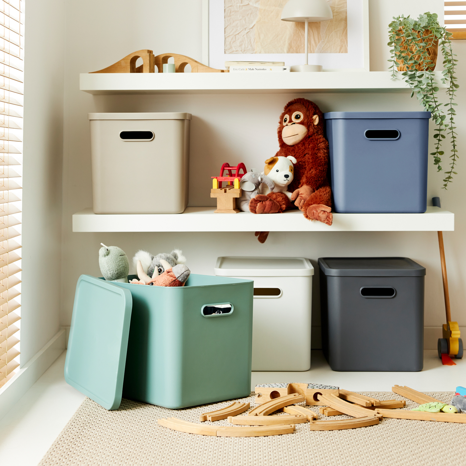 Nos boîtes Albula orientées design sont utilisées pour le stockage systématique de petits et grands objets et apportent ordre et style à votre maison. Les poignées confortables permettent un transport facile, même avec un contenu lourd. Grâce au plastique facile d'entretien, les boîtes peuvent être facilement nettoyées à l'intérieur et à l'extérieur. Les produits sont fabriqués à partir de matériaux recyclés et protègent ainsi l'environnement. Que ce soit dans la chambre des enfants, dans la salle de bain, dans le garde-manger ou dans la cuisine : les boîtes de rangement Albula sont demandées partout.