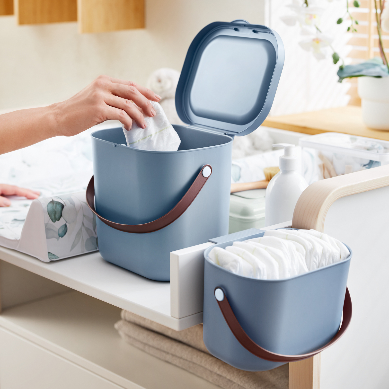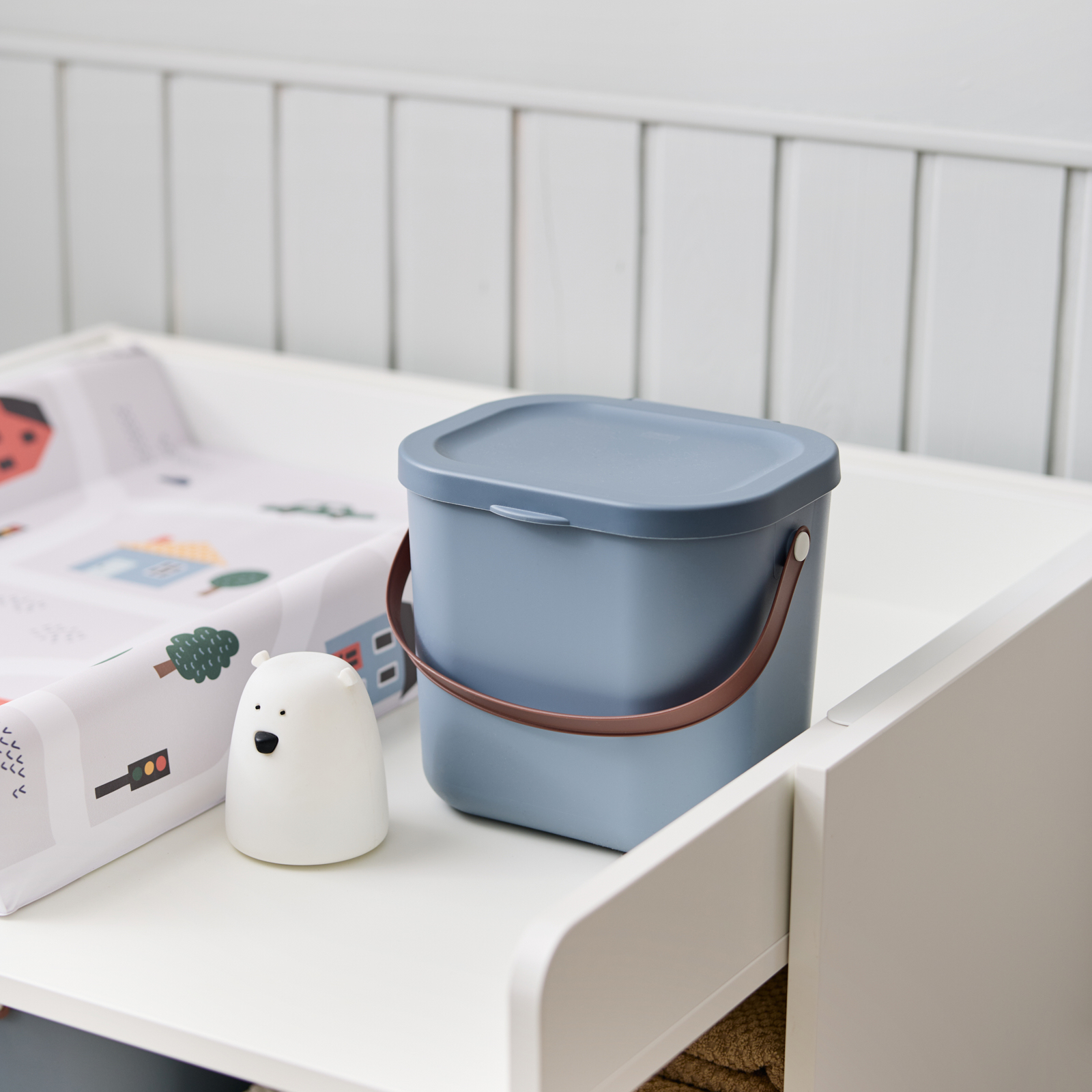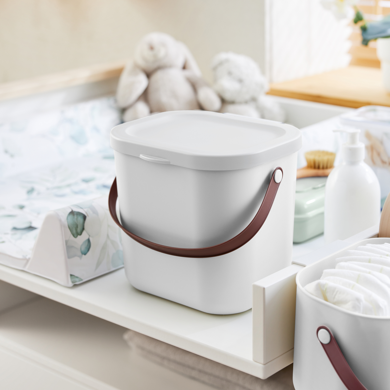 Der Windeleimer von Rotho Babydesign ist die praktische Lösung für den Alltag mit Ihrem Baby. Er ermöglicht Ihnen das schnelle und hygienische Sammeln sowie Entsorgen von schmutzigen Windeln – genau dann, wenn es darauf ankommt. Dank des durchdachten Klapp-Deckels lässt sich der Eimer bequem mit nur einer Hand öffnen, sodass Sie Ihr Baby jederzeit sicher im Blick und eine Hand frei haben.