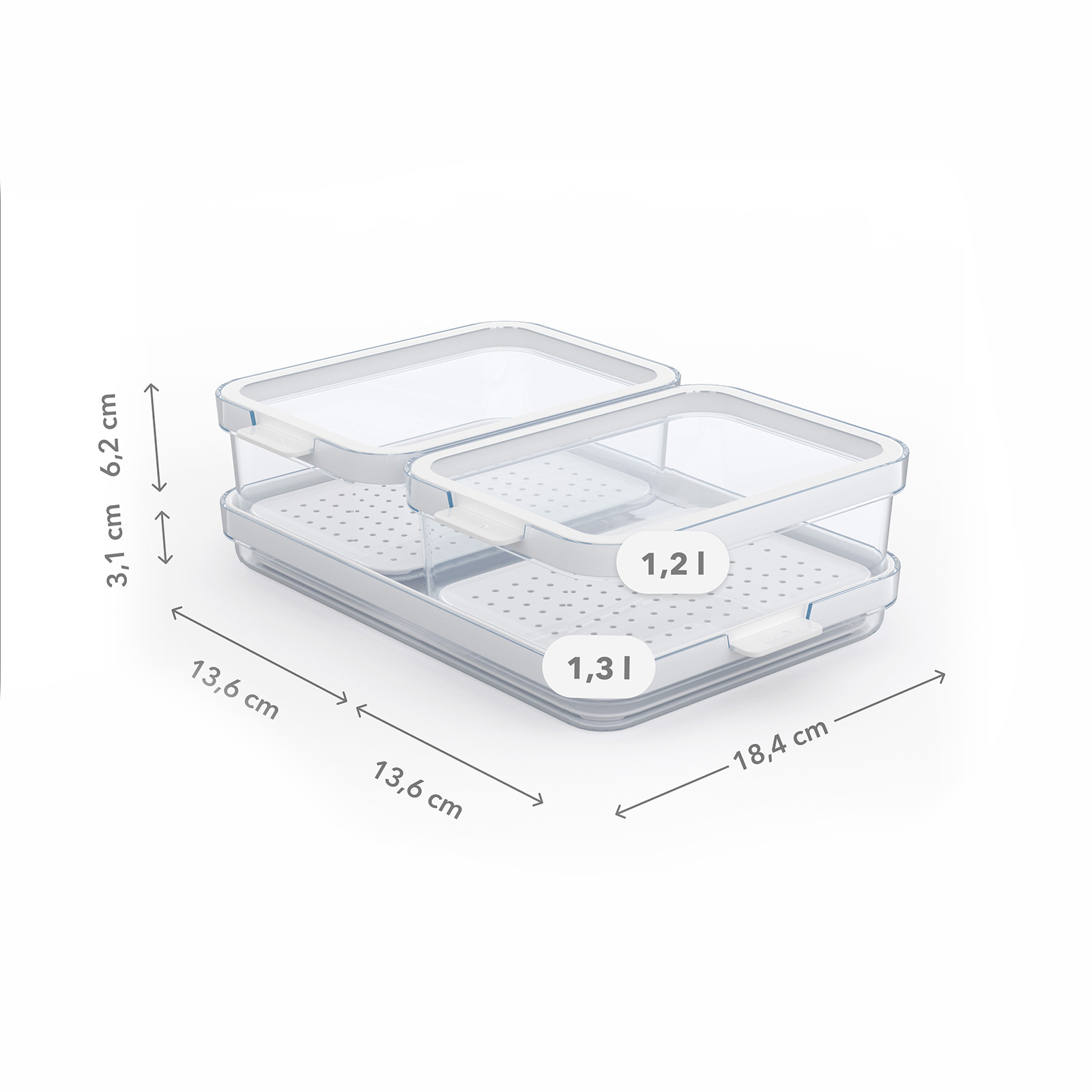 • Include: 1 contenitore da 1,3 L e 2 contenitori da 1,2 L