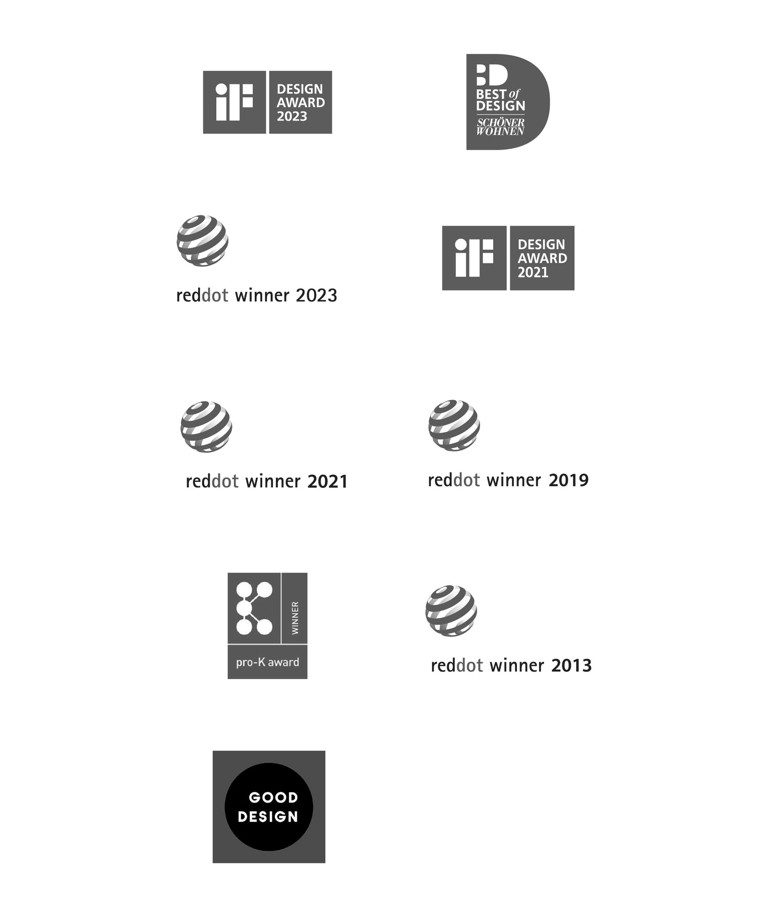 Wir sind stolz, dass bereits einige unserer innovativen Linien renommierte Design-Preise gewonnen haben und mit den begehrtesten Design-Preisen, somit Qualitätssiegeln für gute und innovative Produkte, wie IF Award, Good Design Award und Red Dot Award jährlich ausgezeichnet werden.