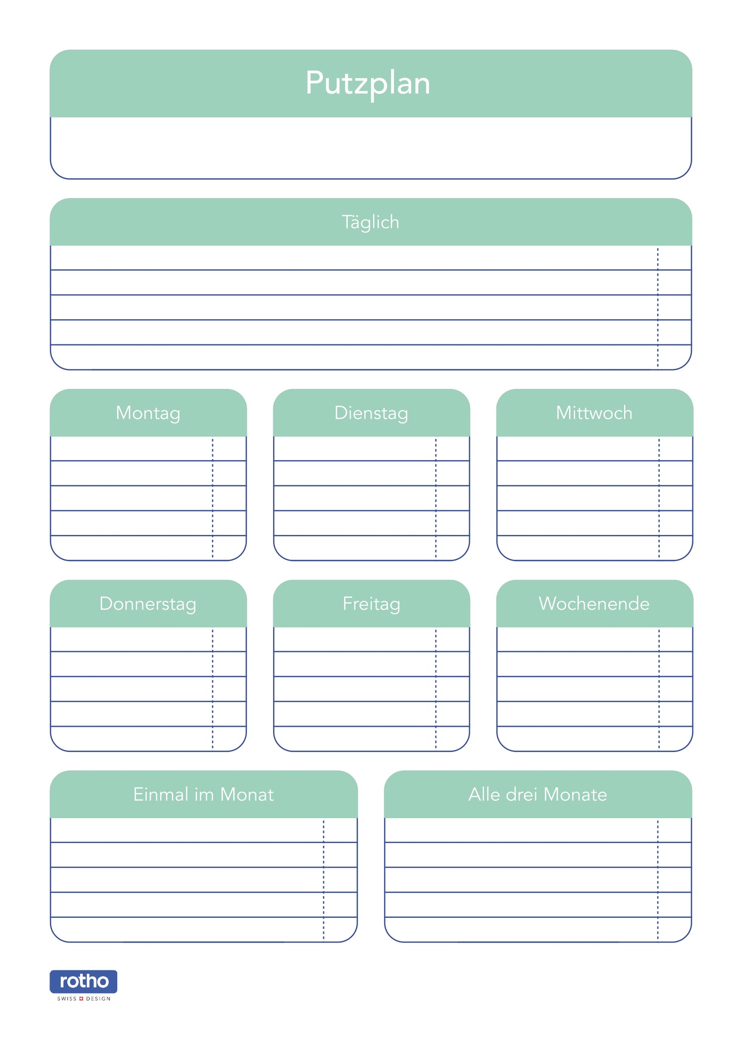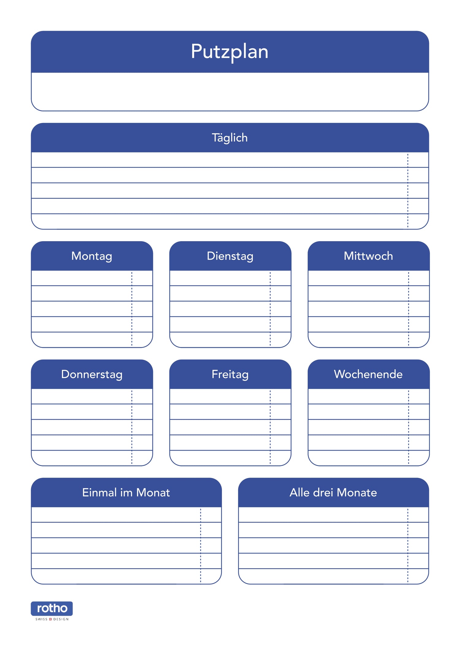 Nie ma czegoś takiego jak idealny harmonogram sprzątania lub idealny szablon dla każdego, ponieważ każdy ma inne potrzeby i rutyny. Aby jednak nie trzeba było zaczynać od zera, stworzyliśmy trzy szablony własnego harmonogramu sprzątania: z podziałem na tygodnie, pokoje i osoby. Możesz więc wybrać swój własny system i wydrukować swój codzienny plan sprzątania! W ten sposób zawsze będziesz mieć swój plan pod ręką, będziesz mieć przegląd i krok po kroku wykonasz zadania domowe. Najlepiej wydrukować kilka arkuszy jednocześnie.