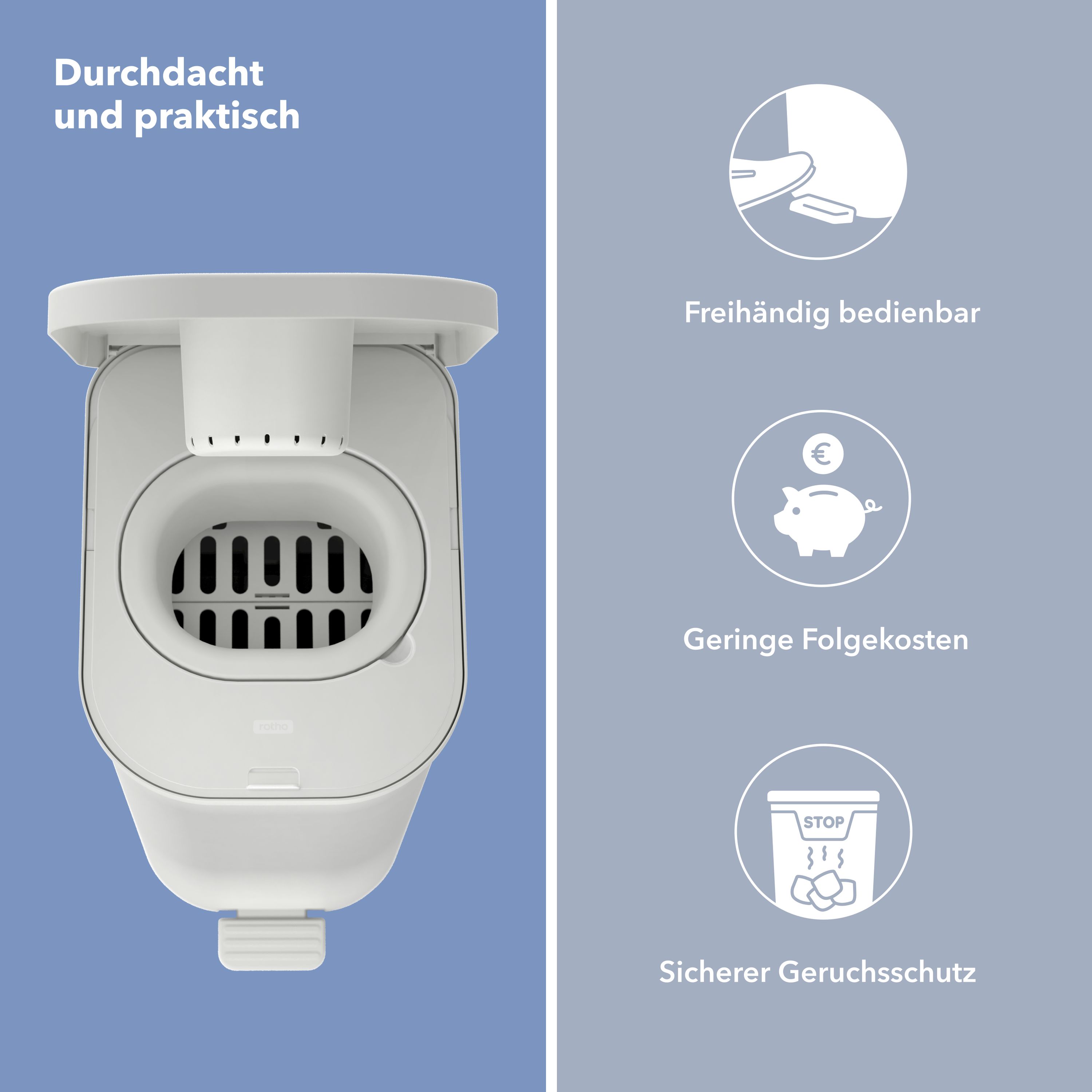 • Innovatives Zwei-Kammer-System: verhindert unangenehme Gerüche – auch beim Nachlegen neuer Windeln bleibt die Umgebung geruchsfrei.