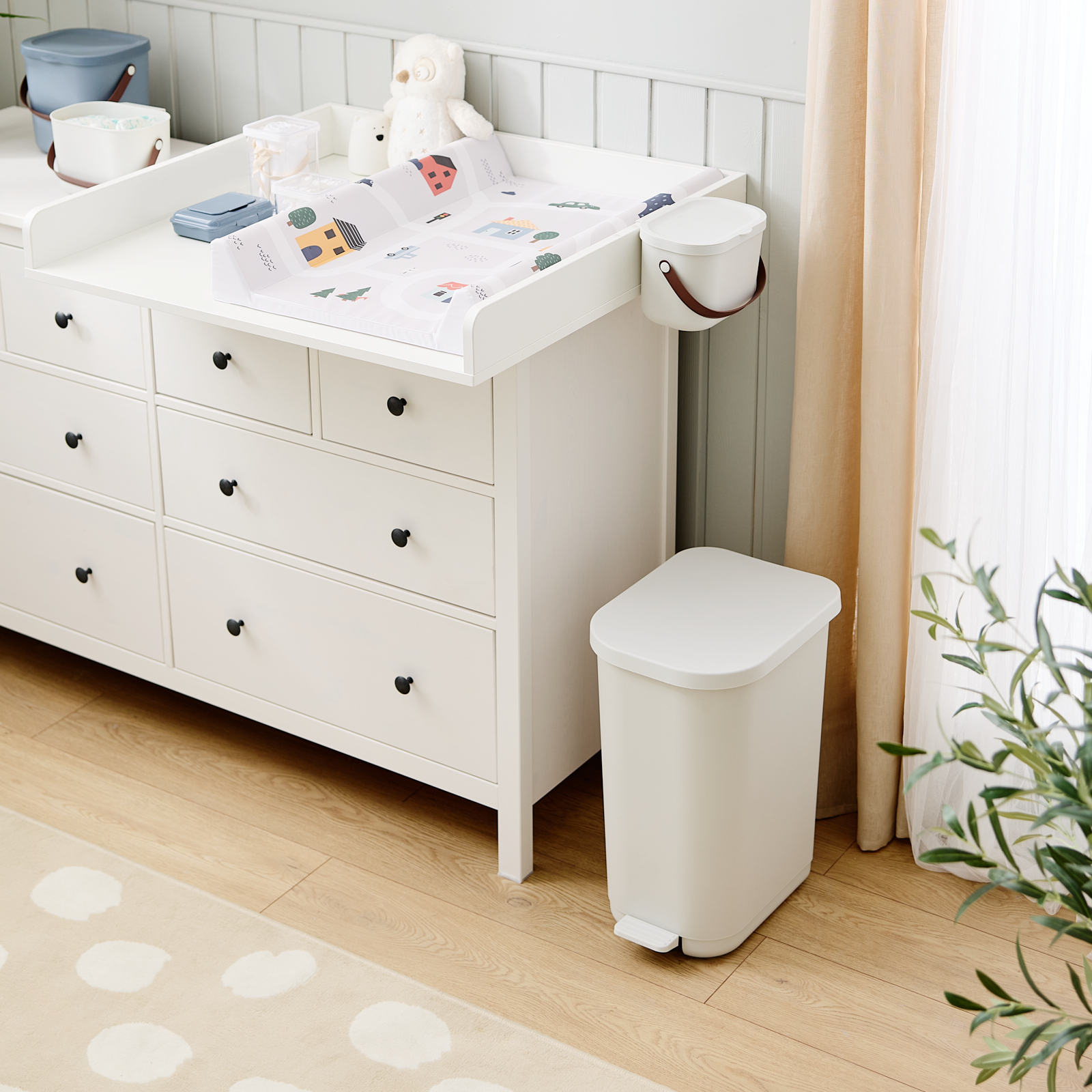 • Nach der Wickelzeit als stilvoller Mülleimer weiterverwendbar