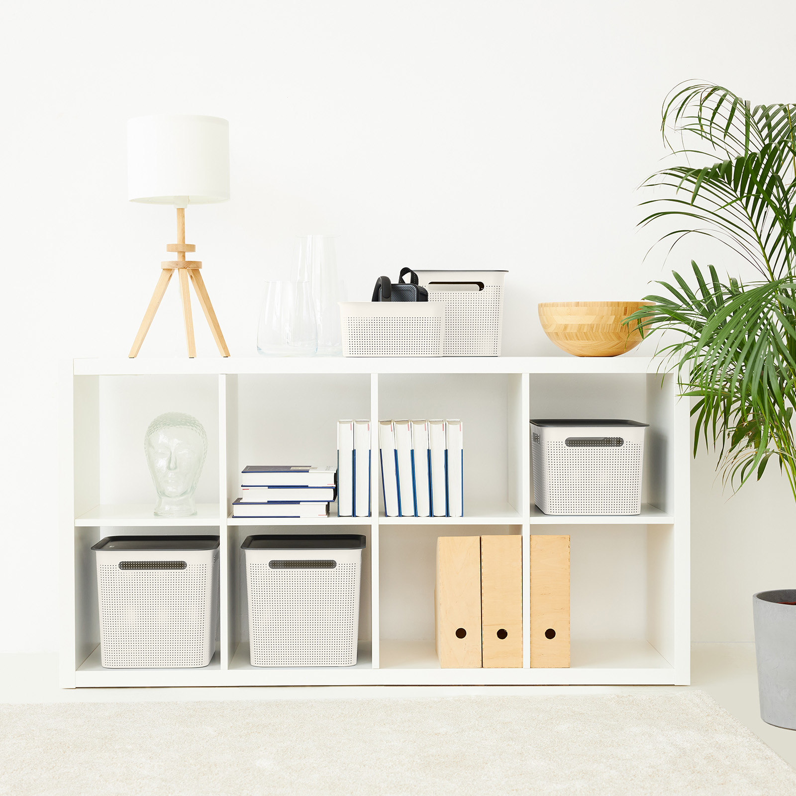 Sicher kennen Sie es auch, wenn Sie etwas suchen, es sich oftmals nicht an dem Ort befindet, an dem es eigentlich sein soll. Mit der Box 7 l BRISEN von Rotho und den anderen Aufbewahrungsboxen dieser Reihe können Sie zukünftig für Ordnung im eigenen Heim sorgen. Ob Sie darin Unterlagen, Dekoartikel oder Spielsachen der Kinder aufbewahren, ist Ihre Entscheidung. Dank der Form passt die Box perfekt in Regalsysteme verschiedener Möbelketten. Das Design der Aufbewahrungsbox ist zeitlos, aber dennoch ist sie formschön. Damit sind die Boxen problemlos in verschiedenen Bereichen einsetzbar. Die Ecken sind abgerundet, sodass auch für die Kleinsten keine Verletzungsgefahr besteht.