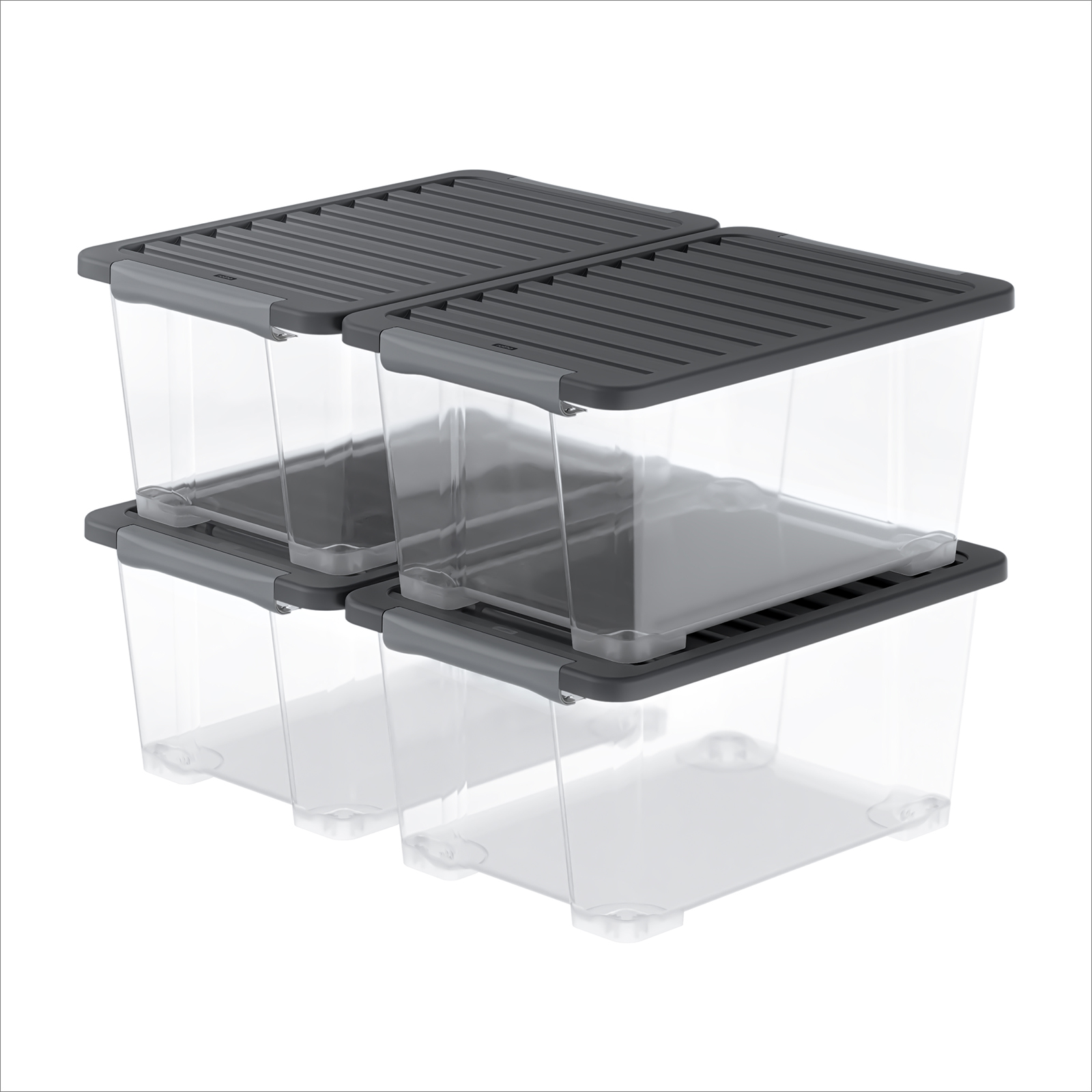 Mit dem Rotho CORE Plus Boxen 4er-Set mit jeweils 44 Litern Volumen schaffen Sie eine stabile und durchdachte Lösung für mehr Ordnung in Ihrem Zuhause. Ob in der Küche, im Keller, im Büro oder in der Werkstatt – diese robusten Aufbewahrungsboxen sorgen dafür, dass Ihre Gegenstände sicher verstaut und optimal geschützt sind. Das klare, funktionale Design fügt sich harmonisch in jede Umgebung ein und überzeugt durch langlebige Qualität.