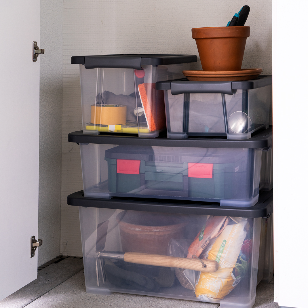 Die stabilen, verschließbaren Griffe sichern den Deckel zuverlässig und schützen den Inhalt vor Staub und äußeren Einflüssen. Dank des lebensmittelechten Materials eignen sich die Boxen ideal zur Aufbewahrung von trockenen Lebensmitteln, Vorräten und Küchenutensilien. Gleichzeitig bieten sie ausreichend Platz für Werkzeuge, Bastelmaterial oder Bürobedarf und sind damit vielseitig einsetzbar.