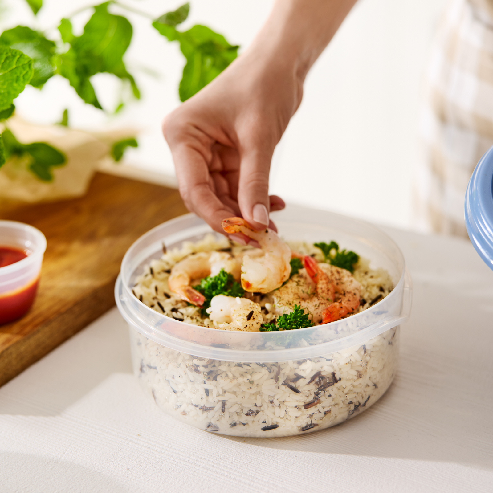 Die Frischhaltedose RONDO ist ein wahres Multitalent: In den Dosen von 0,07 bis 8,0 Liter lassen sich nicht nur Trauben oder Cracker bequem aufbewahren, Sie können darin auch übrig gebliebene Essenreste oder ganze Gerichte verstauen. Dank des dicht schließenden Deckels dient die Dose sowohl als ;Frischhaltedose ;als auch als ;praktischer Transportbehälter. Wahlweise können Sie die Dose auch zum Einfrieren von Lebensmitteln verwenden. Sie haben somit einen vielseitigen Küchenhelfer zur Hand, der Ihnen nicht nur zuhause gute Dienste leistet, sondern Sie auch ins Büro, zu Picknicks oder Partys begleitet. Den Inhalt haben Sie dank des transparenten Materials immer gut im Blick. Nach Gebrauch reinigen Sie den Behälter einfach in der Spülmaschine.
