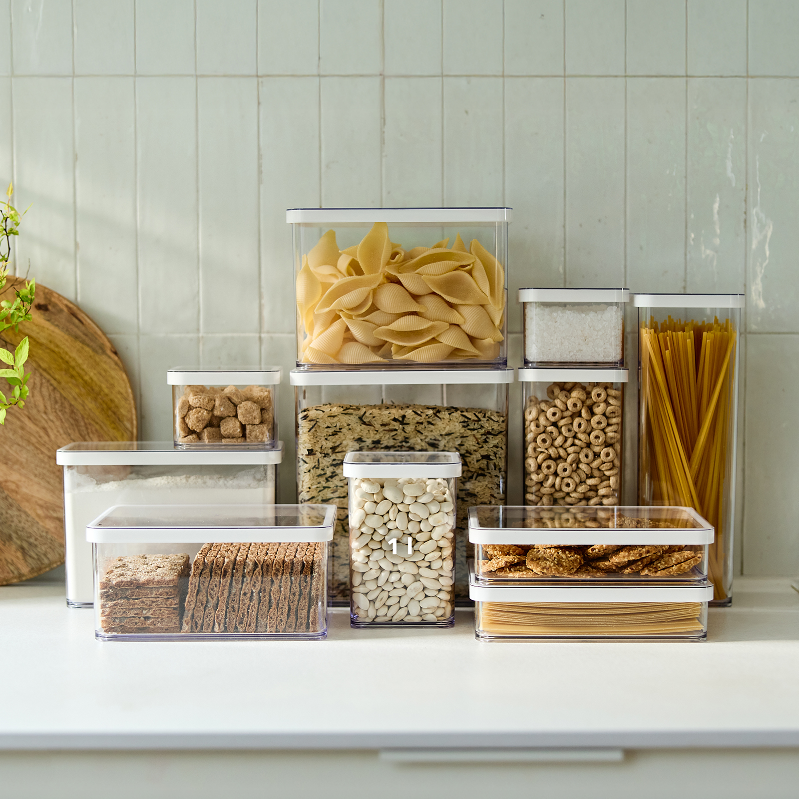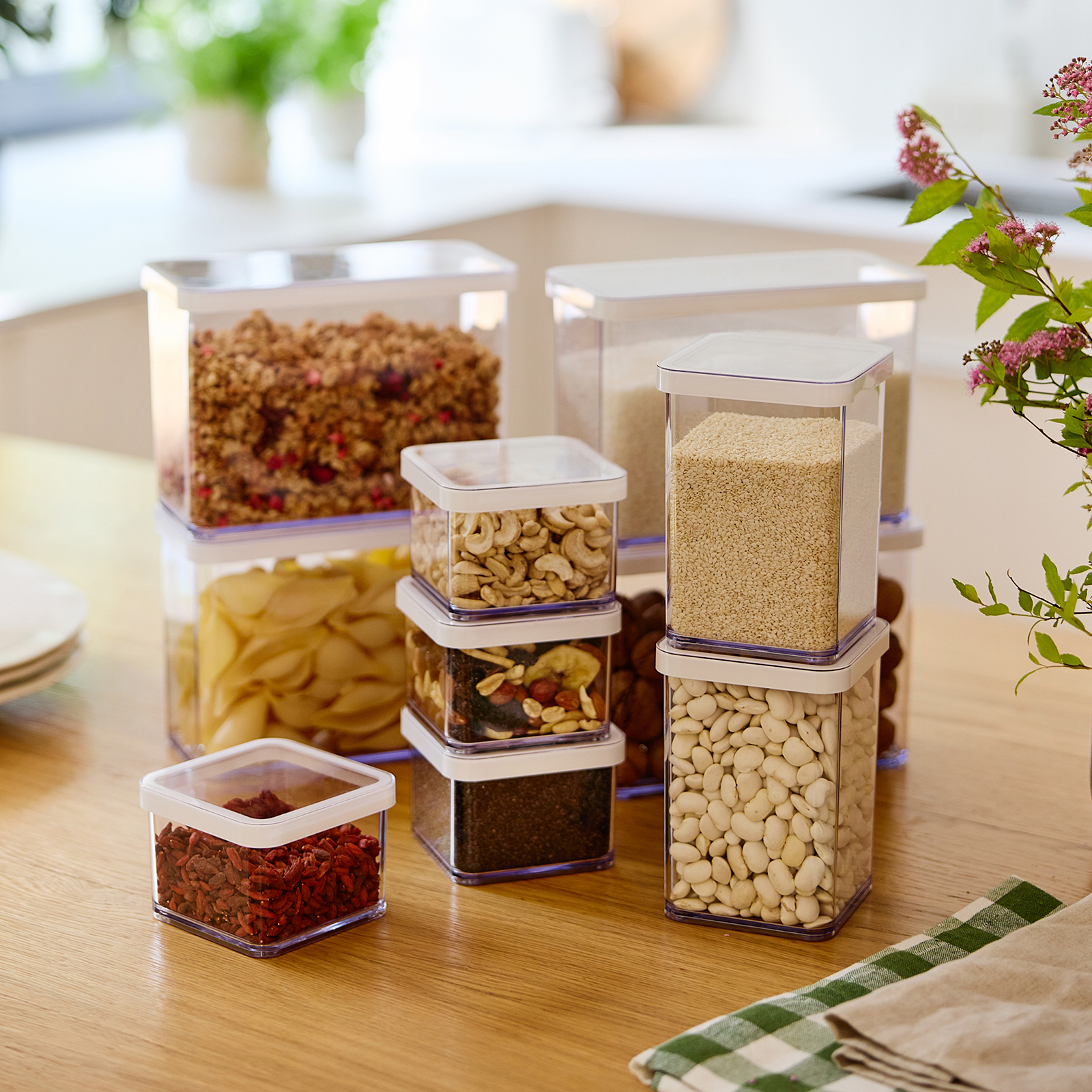 Das Vorratsdosen-Set besteht aus 100 % recycelbarem Kunststoff. Entdecken Sie weitere clevere Aufbewahrungslösungen aus der LOFT Linie und gestalten Sie Ihr Zuhause nachhaltig und stilvoll.